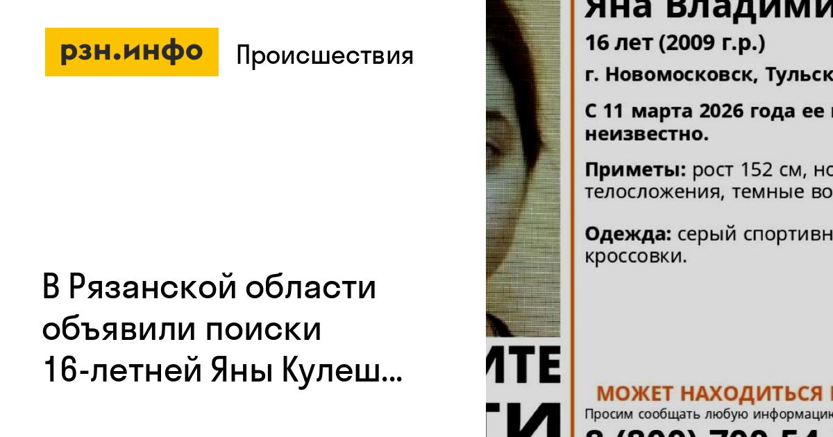 В Рязанской области объявили поиски 16-летней Яны Кулешовой