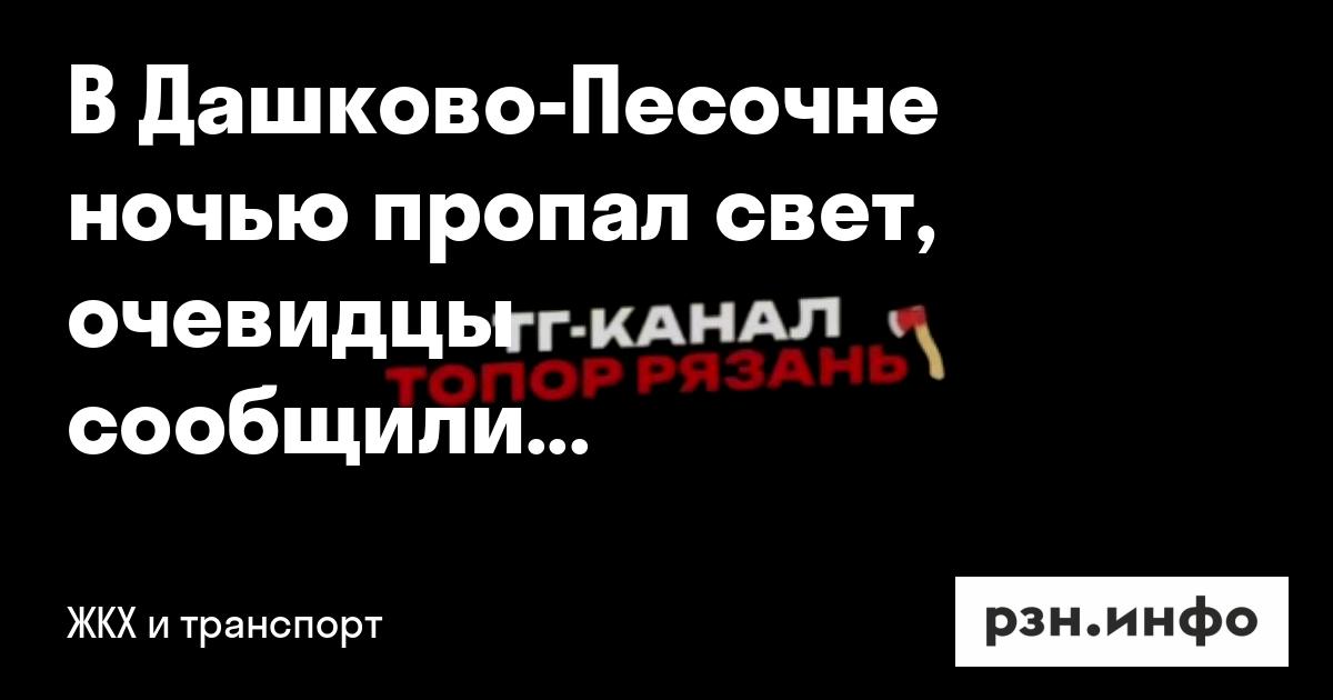 Жители района Дашково-Песочня сообщили об отключении света ночью. Информация об этом появилась в телеграм-канале «Топор. Рязань».