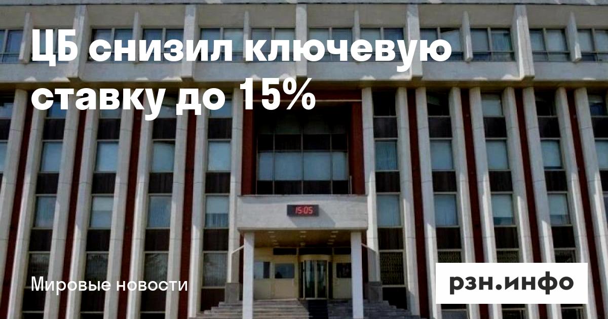 ЦБ снизил ключевую ставку до 15%
