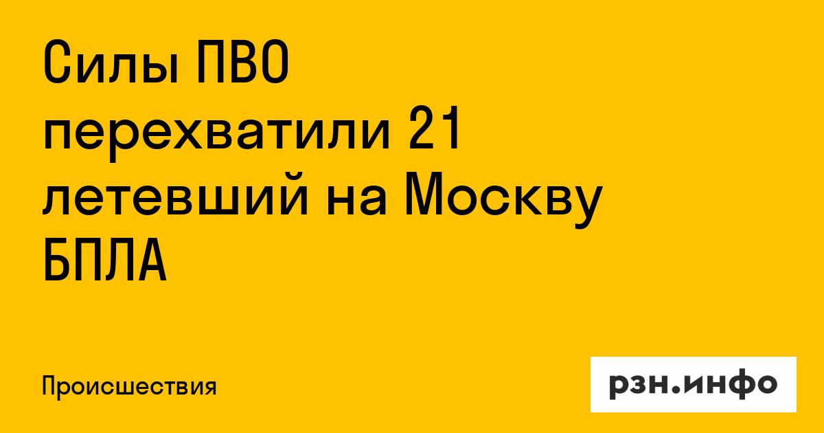 Силы ПВО перехватили 21 летевший на Москву БПЛА. Об этом сообщил в своих соцсетях мэр столицы Сергей Собянин.