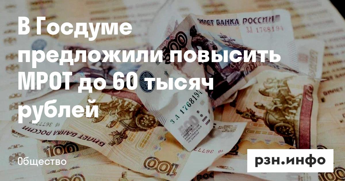 В Госдуме предложили повысить МРОТ до 60 тысяч рублей. Об этом депутат Сергей Миронов сообщил в интервью ТАСС.