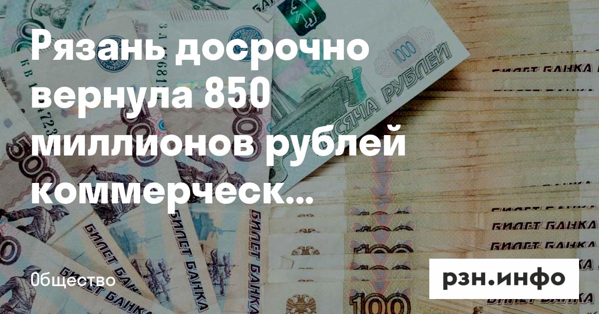 Рязань досрочно вернула 850 миллионов рублей коммерческих кредитов