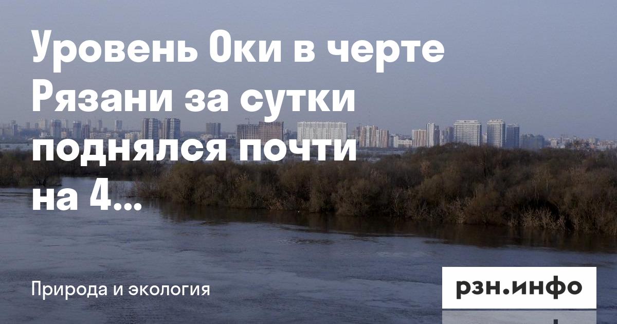За сутки в черте Рязани в Оке уровень воды повысился на 37 сантиметров и составляет 172 сантиметра выше нулевой отметки. В районе села Старая Рязань уровень Оки также повысился на 16 сантиметров и составляет 266 сантиметров. В Касимове Ока поднялась на 19 сантиметров и составляет 233 сантиметра.