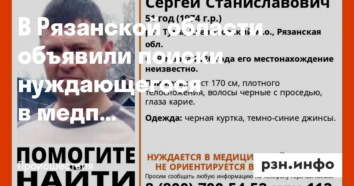 В Рязанской области объявили поиски нуждающегося в медпомощи мужчины