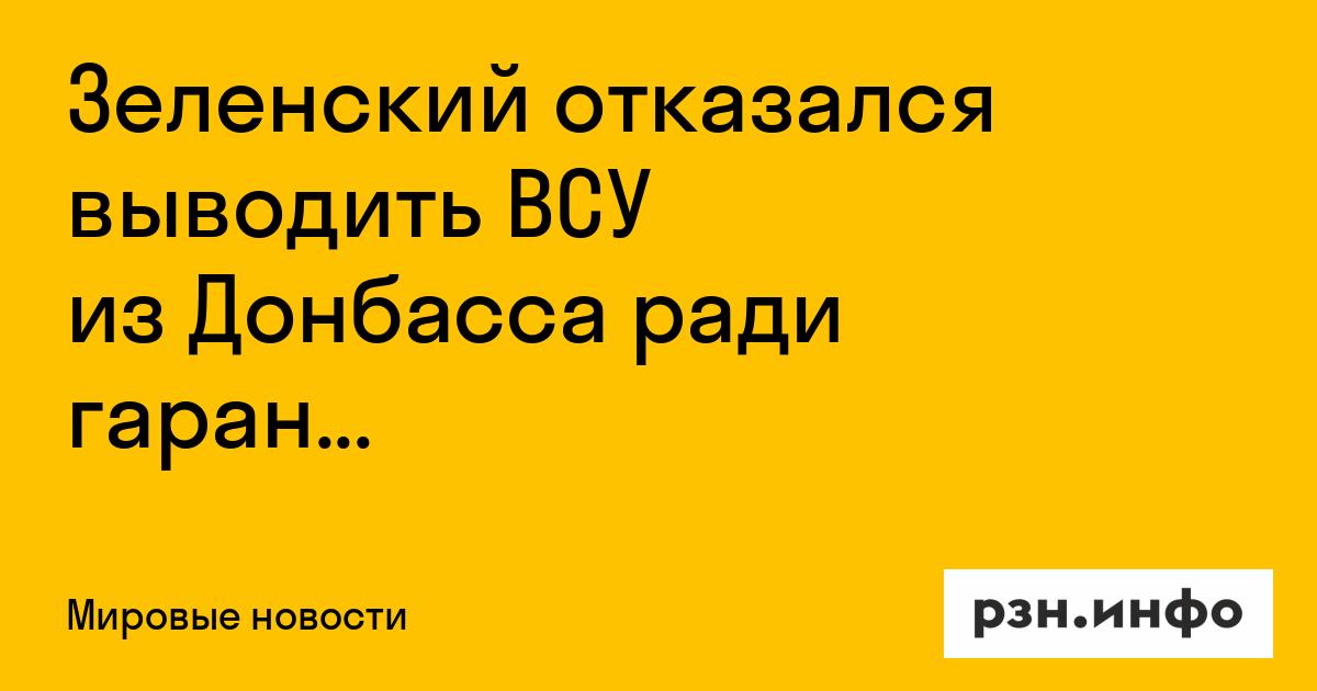 Зеленский отказался выводить ВСУ из Донбасса ради гарантий безопасности от США.
