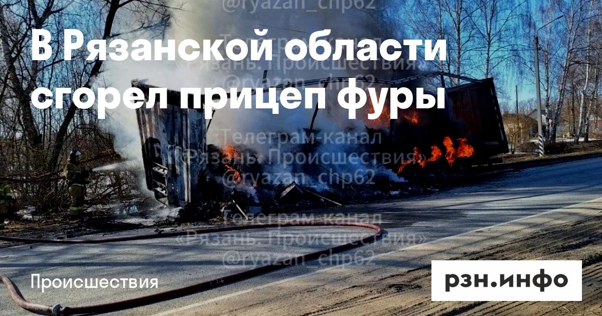 Отмечается, что инцидент произошел 29 марта в селе Гулынки Старожиловского района. Предположительно, прицеп фуры вспыхнул после ДТП с легковушкой, которую увез эвакуатор, следует из опубликованных кадров.
