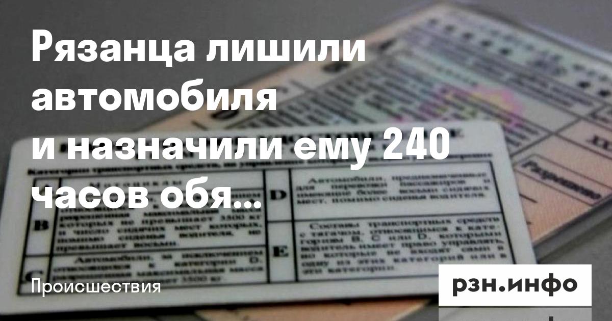 Рязанца лишили автомобиля и назначили ему 240 часов обязательных работ за повторное пьяное вождение
