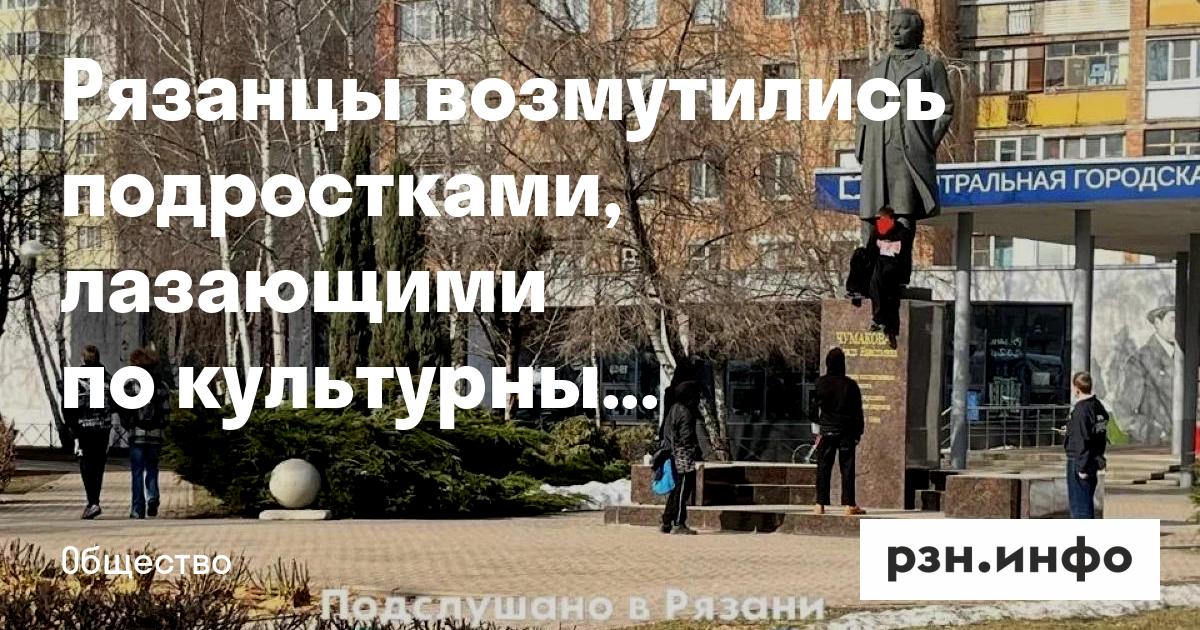Рязанцы возмутились поведением подростков в сквере имени Надежды Николаевны Чумаковой. Об этом сообщили в телеграм-канале «Подслушано в Рязани». По словам очевидцев, молодые люди залезали на памятник и прыгали с него, используя монумент как площадку для развлечений. «Подростки устроили игры на памятнике в Рязани», — пишут жители. Отмечается, что рязанцы возмущены таким отношением и просят обратить внимание на ситуацию.