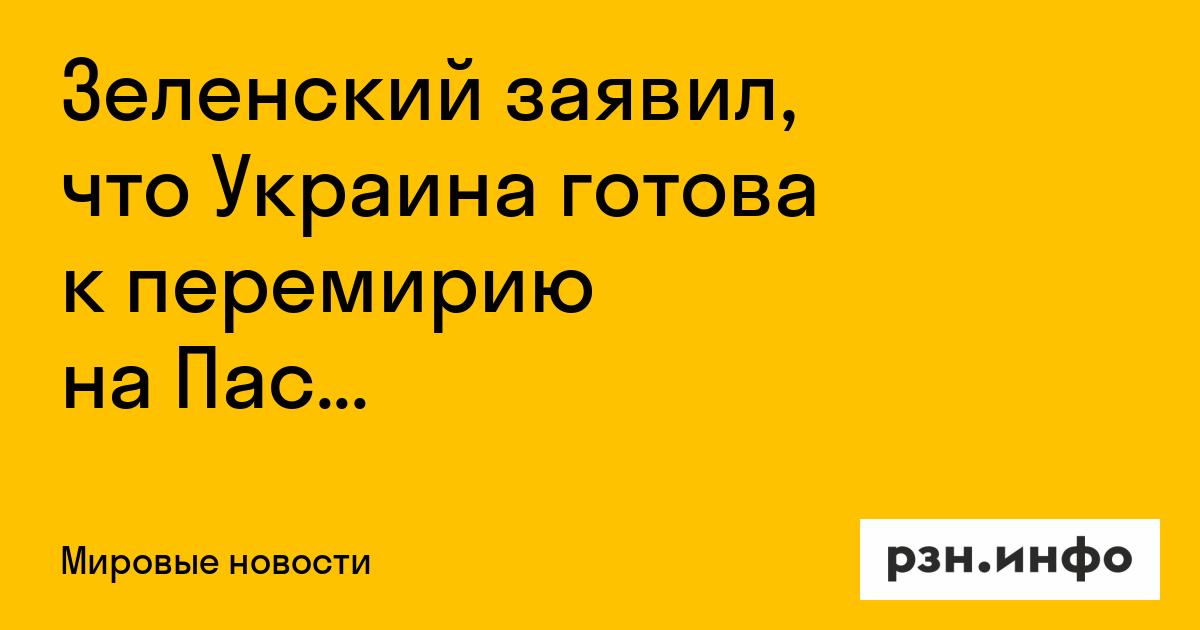 Зеленский заявил, что Украина готова к перемирию на Пасху. Об этом пишет «Лента. ру».