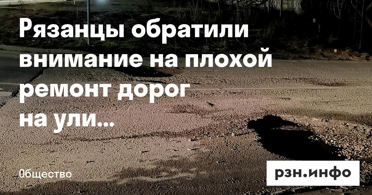 Рязанцы обратили внимание на плохой ремонт дорог на улице Тепличной