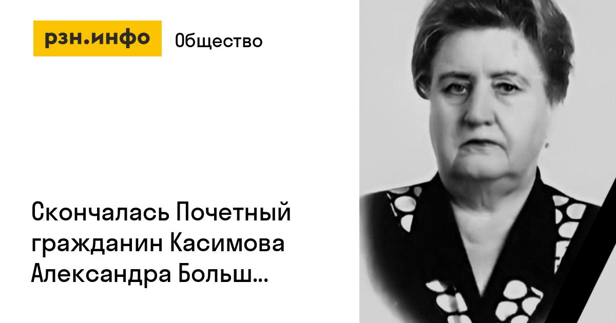 В Касимове ушла из жизни Александра Большакова, Почетный гражданин города Касимова, заслуженный работник текстильной и легкой промышленности России. С 1983 года она бессменно возглавляла Касимовскую овчинно-меховую фабрику (впоследствии — ЗАО «РУНО»). Избиралась депутатом Касимовской городской Думы трех созывов, возглавляла комиссию по бюджету и налогам. Отмечается, что 15 апреля ей исполнилось бы 92 года.