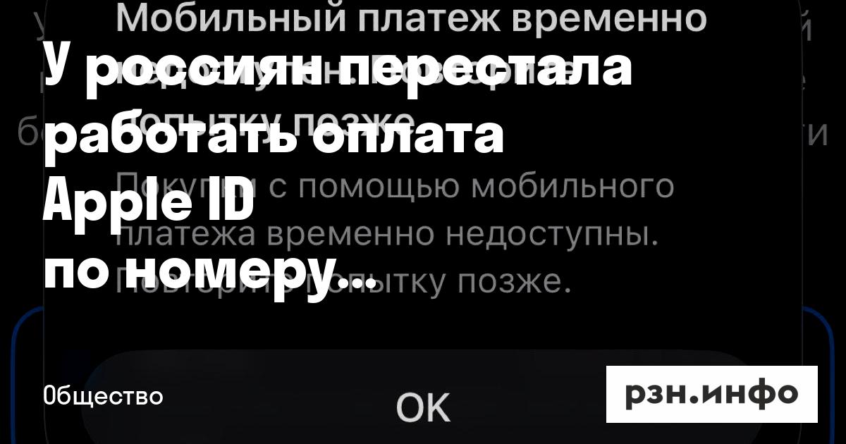 У россиян перестала работать оплата Apple ID по номеру телефона. В этом 1 апреля убедился корреспондент РЗН. инфо.