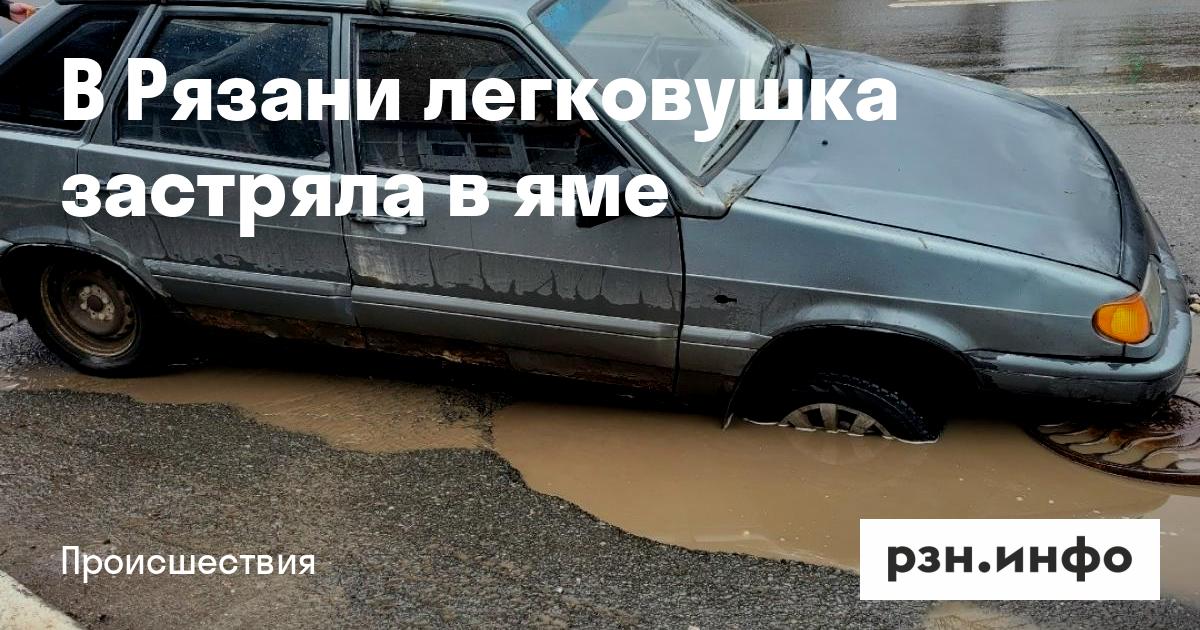 В Рязани легковушка застряла в яме. Пост об этом опубликован 10 апреля в соцсетях.