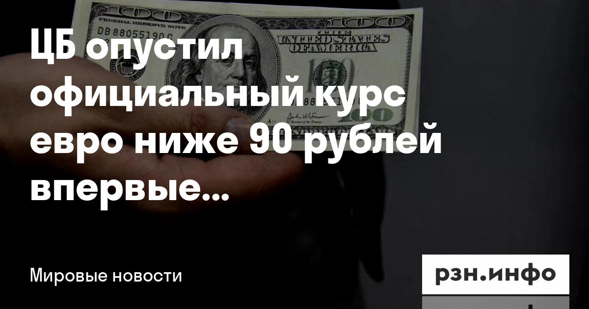 ЦБ опустил официальный курс евро ниже 90 рублей впервые с конца января