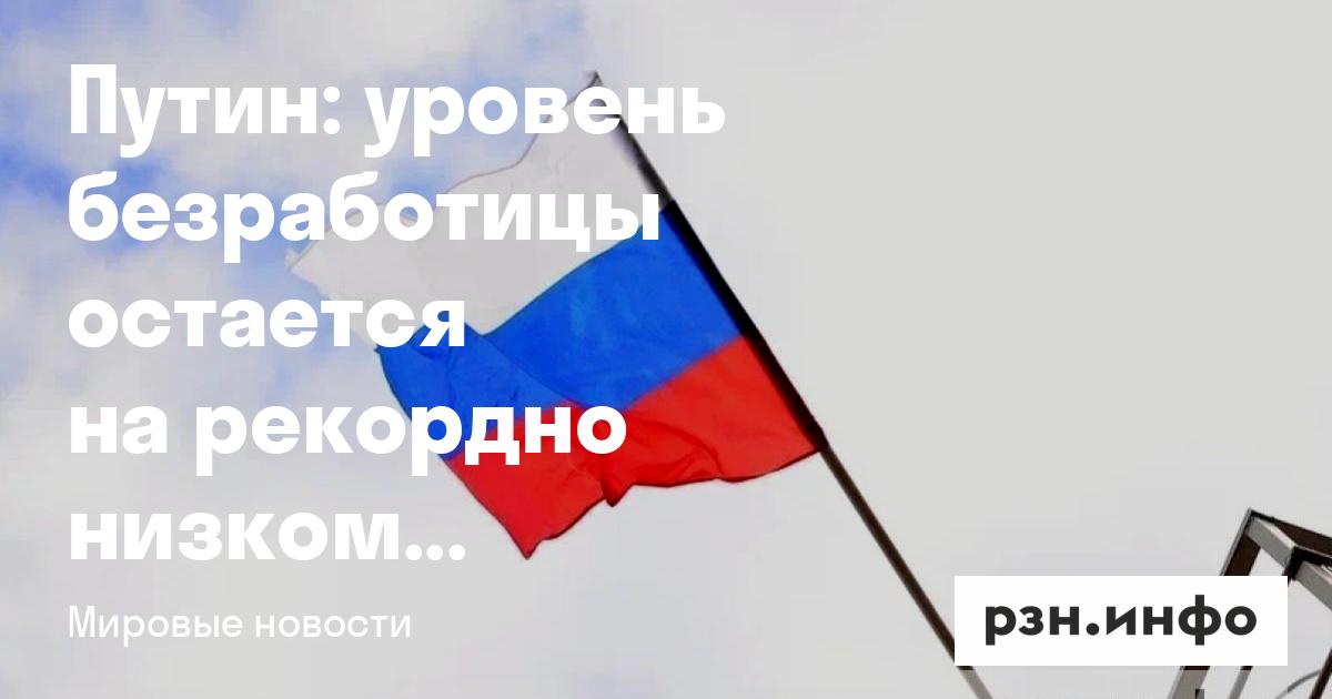 Путин: уровень безработицы остается на рекордно низком уровне в России