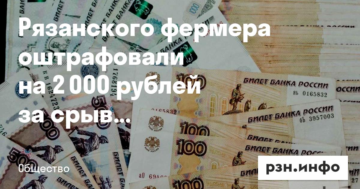Рязанского фермера оштрафовали на 2 000 рублей за срыв проверки Россельхознадзора. Об этом сообщили в пресс-службе регионального ведомства.