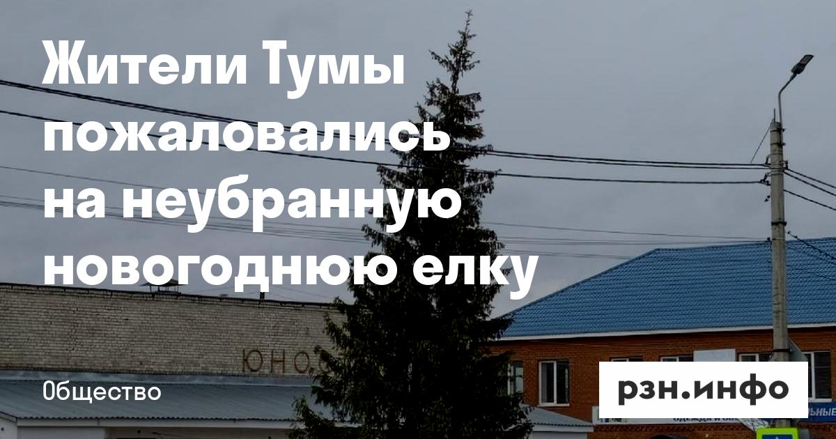 В поселке Тума Рязанской области местные жители пожаловались на неубранную новогоднюю елку. По словам местных жителей, дерево заметно накренилось и может представлять опасность, особенно для детей. Они отмечают, что на дворе уже середина весны, однако елка до сих пор не демонтирована.