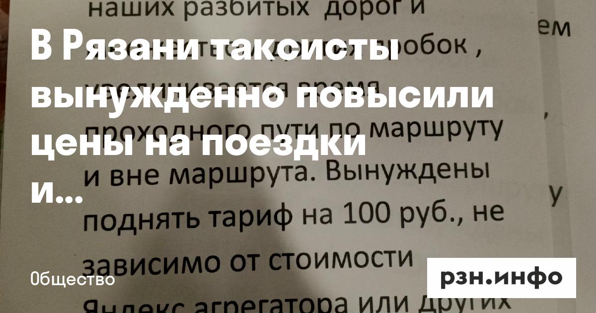 В Рязани водители такси обратились к пассажирам с объявлением о вынужденном повышении тарифа на 100 рублей независимо от стоимости, установленной агрегаторами. Об этом сообщили на странице «ВКонтакте» «Новости Рязани».