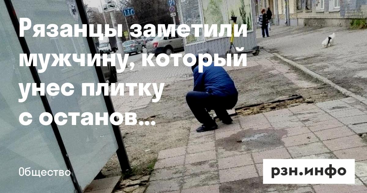 Рязанцы заметили мужчину, который унес плитку с остановки