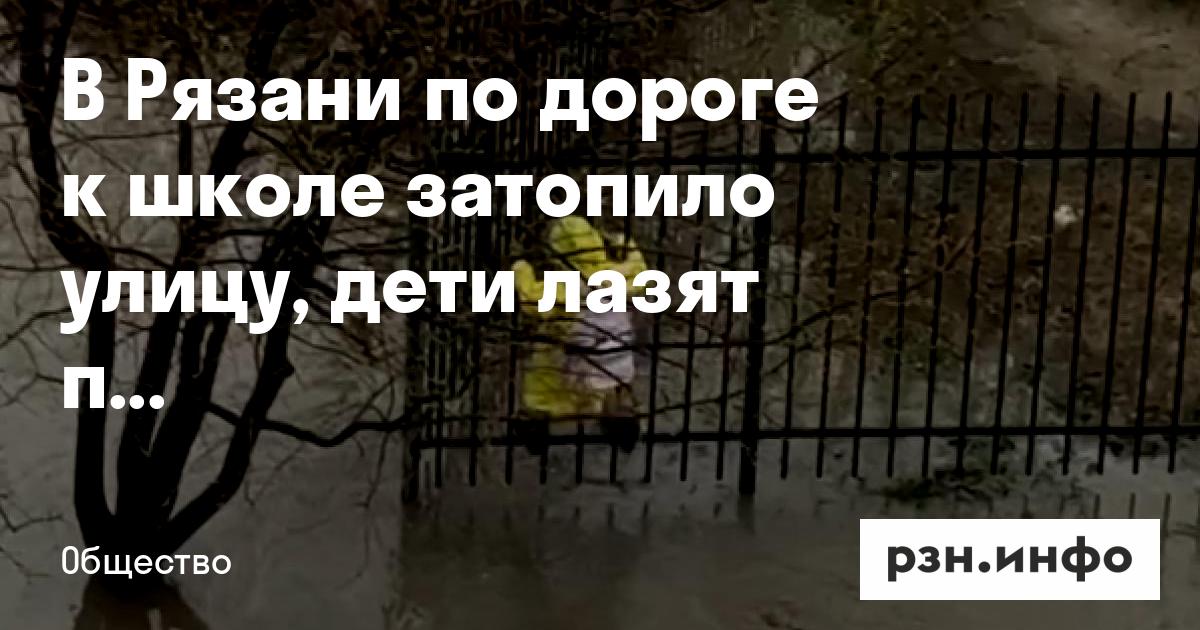 В Рязани по дороге к школе затопило улицу, дети лазят по забору