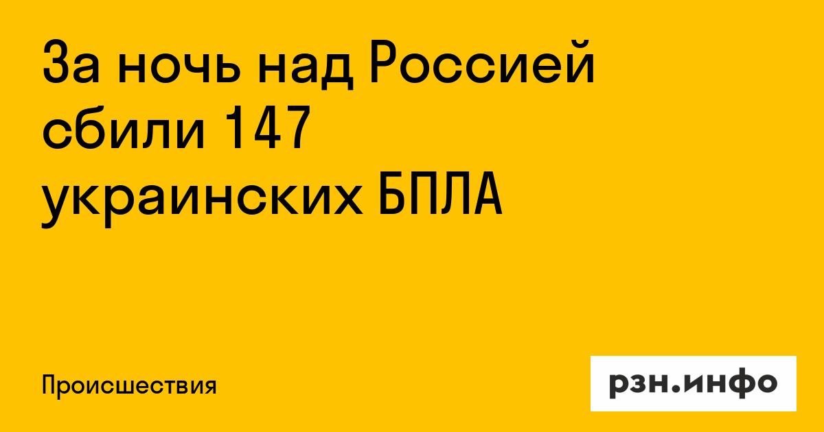 За ночь над Россией сбили 147 украинских БПЛА. Об этом сообщили в Минобороны.