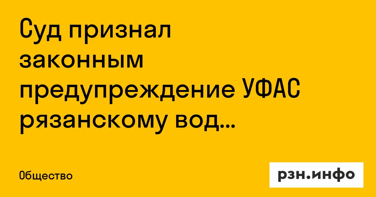 Арбитражный суд Рязанской области отказал МП «Водоканал города Рязани» в удовлетворении требований о признании недействительным предупреждения Рязанского УФАС. Об этом сообщили в пресс-службе суда.