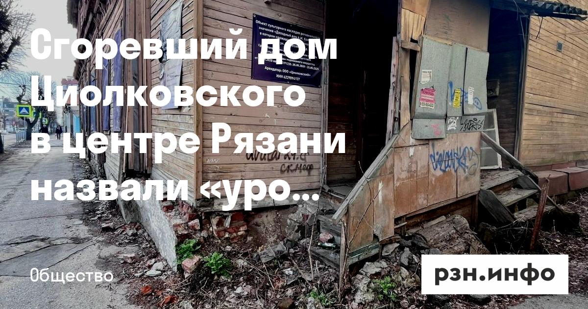 Сгоревший дом Циолковского в центре Рязани назвали «уродством»