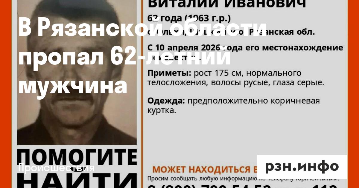 62-летний Виталий Старков из села Ольхи Шацкого округа пропал 10 апреля. Его приметы: рост — 175 см, телосложение нормальное, волосы русые, глаза серые. В день исчезновения мужчина предположительно был одет в коричневую куртку. Всех, кто знает, где может находиться пропавший рязанец, просят звонить по номерам: 8 (800) 700-54-52 или 112.