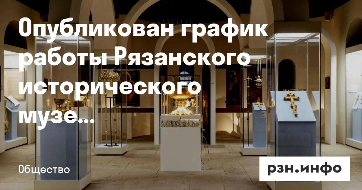 Работать Рязанский исторический музей в праздничные дни будет следующим образом: 30 апреля — с 10:00 до 19:00; 1, 2, 3, 9, 10 мая — с 10:00 до 18:00; 8 мая — с 10:00 до 17:00; 4, 11 мая — выходные дни на всех объектах музея; 10 мая — выходной в Музейном центре имени А. И. Солженицына, Центре науки, традиций и искусства. В публикации уточнили, что касса закрывается за 45 минут до окончания работы музея.