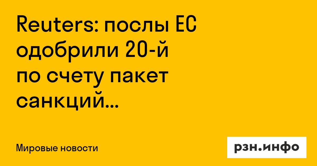 Reuters: послы ЕС одобрили 20-й по счету пакет санкций против России