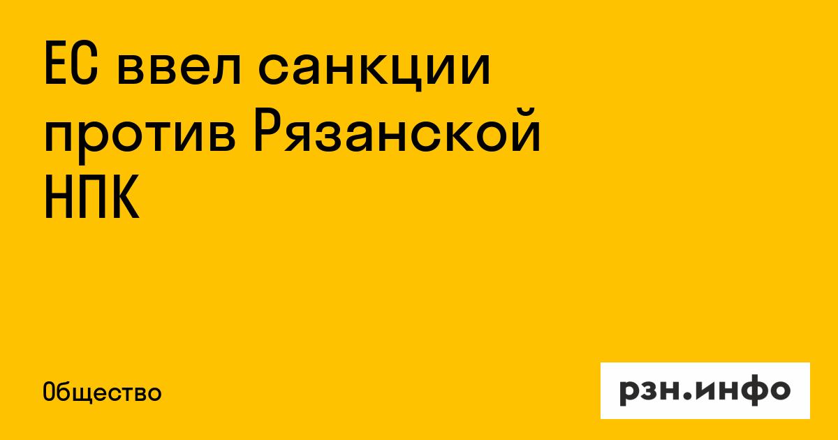ЕС ввел санкции против Рязанской НПК. Об этом 23 апреля ТАСС.
