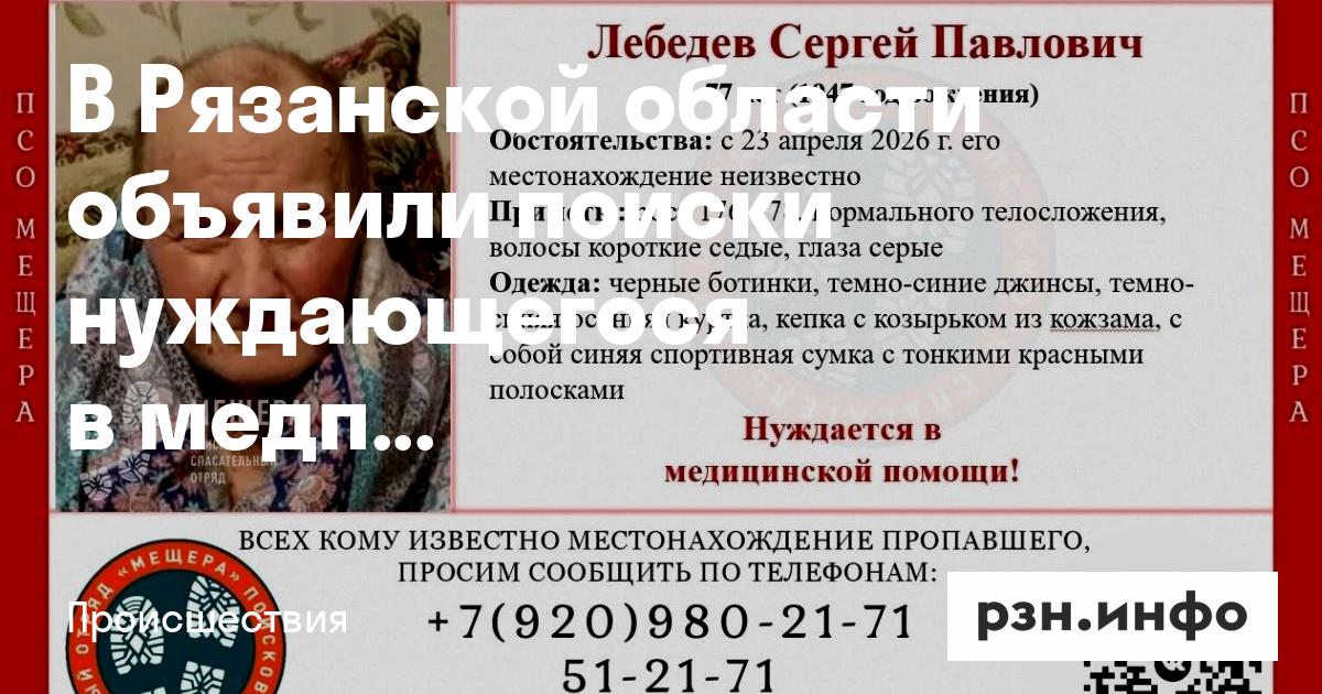 В Рязанском районе объявили поиски Сергея Лебедева, нуждающегося в медпомощи. Об этом сообщили в соцсетях ПСО «Мещера».