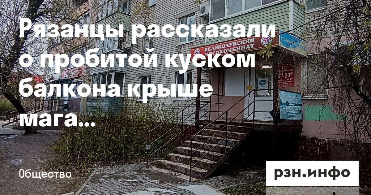 Рязанцы рассказали о пробитой куском балкона крыше магазина