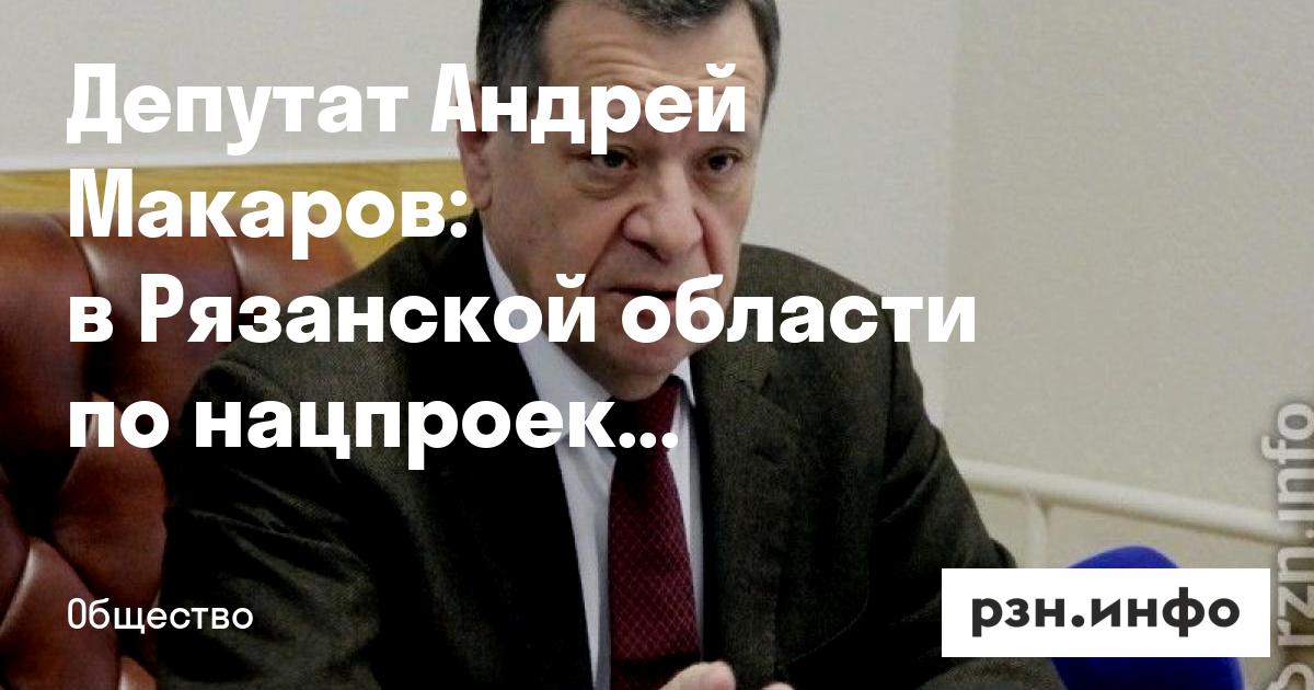 Депутат от Рязанской области, председатель комитета Госдумы по бюджету и налогам Андрей Макаров заявил, что в Рязанской области по нацпроектам «Инфраструктура для жизни» и «Продолжительная и активная жизнь» ведется строительство целого ряда социальных объектов. Об этом он сказал во время отчета в прямом эфире, сообщили в пресс-службе облправительства.
