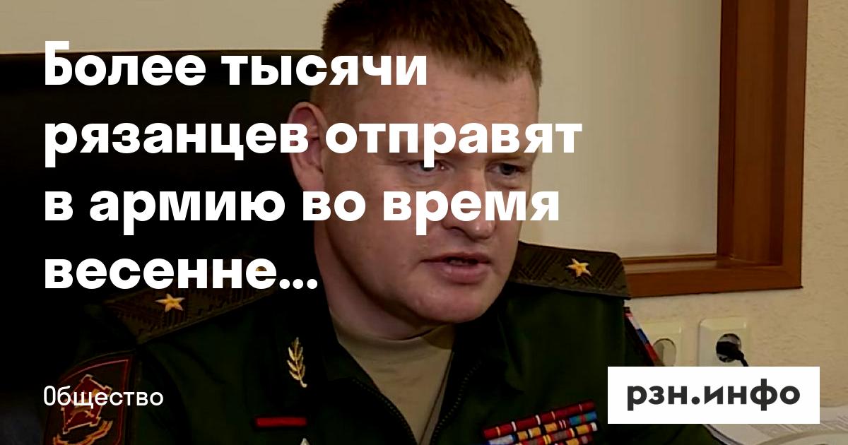 По словам военкома, во время весеннего призыва из Рязанской области в армию отправят 1200 человек. Повестки получат молодые люди в возрасте от 18 до 30 лет, которые по состоянию здоровья признаны годными к службе и не имеют права на отсрочку.