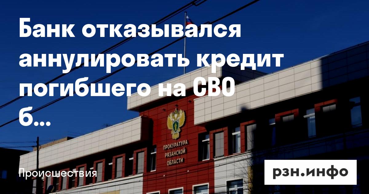 Банк отказывался аннулировать кредит погибшего на СВО бойца из Рязани. Об этом 8 апреля сообщили в пресс-службе облпрокуратуры.