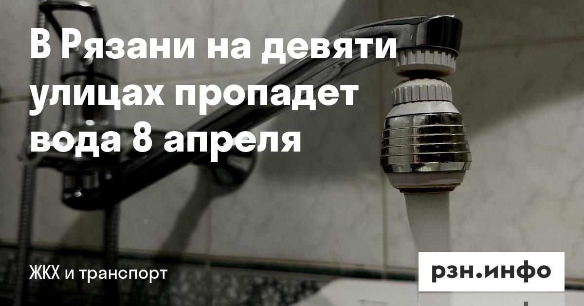В Рязани на девяти улицах пропадет вода 8 апреля. Об этом сообщили на сайте «Водоканала».
