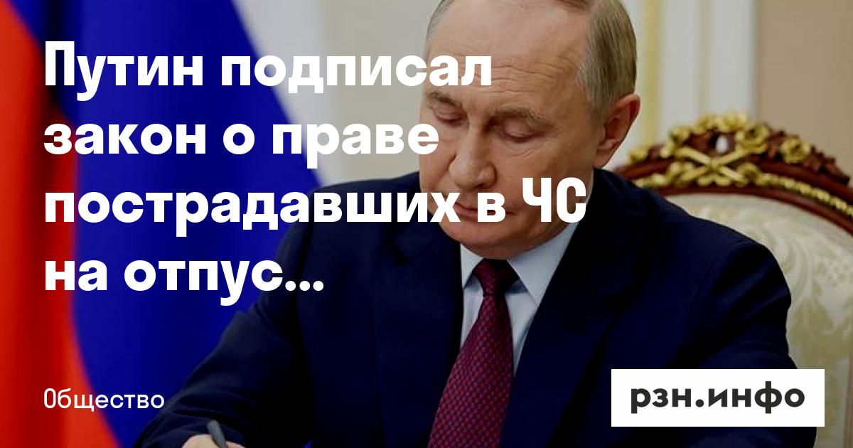 Президент России Владимир Путин подписал новый закон, который предоставляет пострадавшим в чрезвычайных ситуациях право на оплачиваемый выходной и пятидневный отпуск без сохранения заработной платы. Соответствующий документ опубликован на сайте официального опубликования правовых актов, передает РИА Новости.