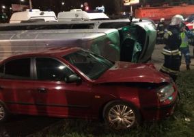 В центре Рязани перевернулась маршрутка с пассажирами